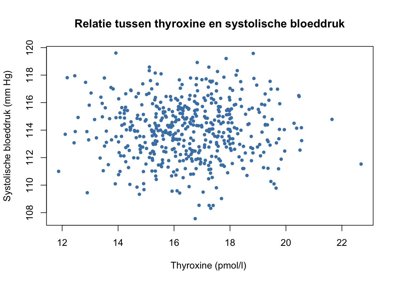 Hoe sterk schat je de correlatie tussen thyroxine en systolische bloeddruk?