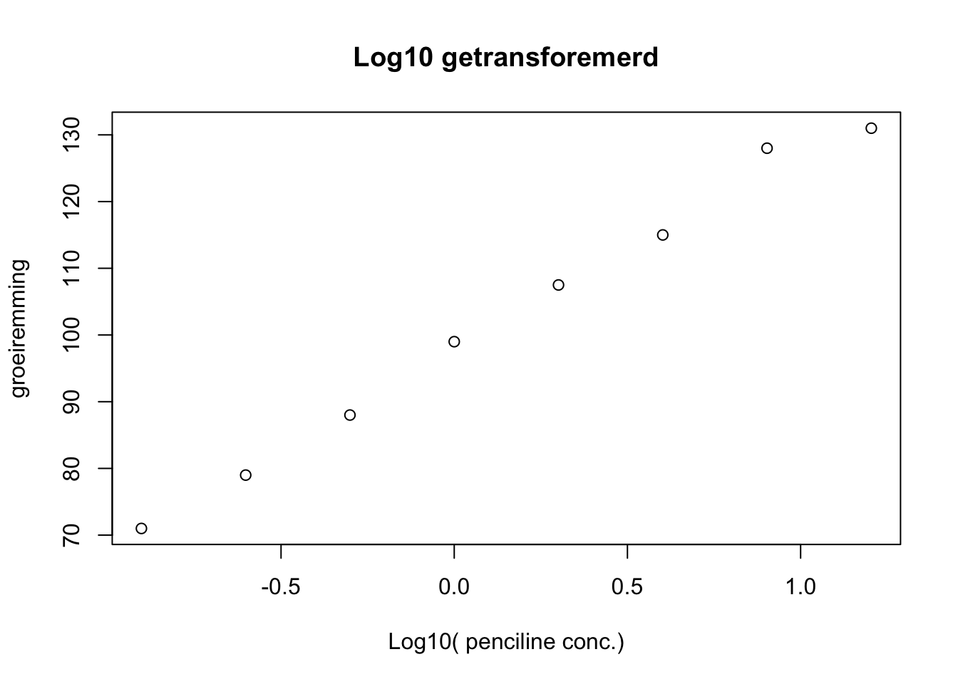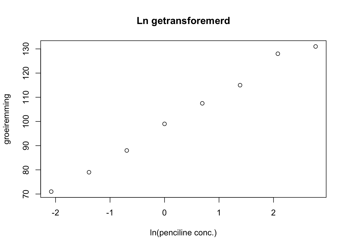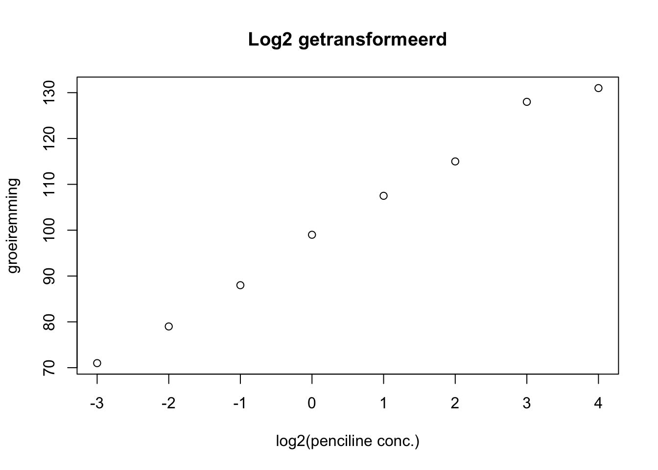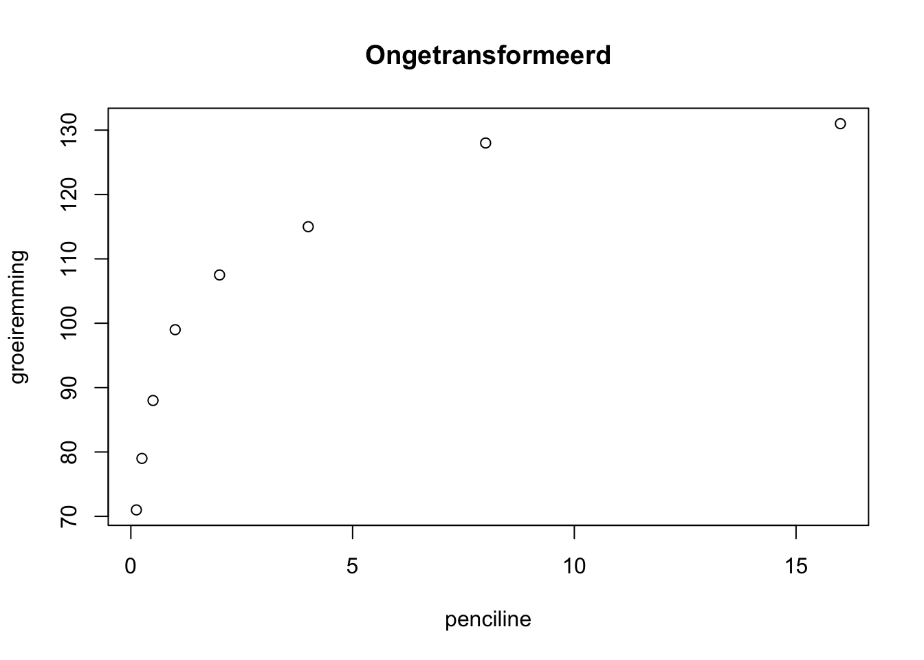 | Penicilline | Ongetransformeerd | Log-2 | Ln (=Log-e) | Log-10 |