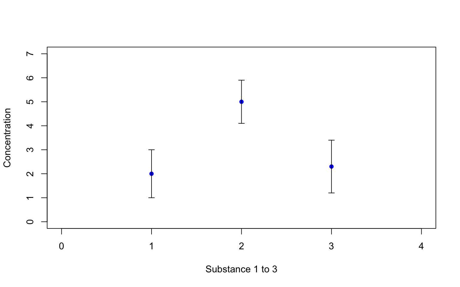 Het figuur is overgenomen van een website van de U.S. National Enviromental Laboratory. In deze figuur staan van een steekproef (monsters) de gemiddelde concentraties van 3 radioactieve substanties met een 95% betrouwbaarheidsinterval weergegeven. Als tekst bij de figuur staat: “the first plotted mean is 2.0 ± 1.1, so there is a 95% chance that the actual result is between 0.9 and 3.1, a 2.5% chance that it is less than 0.9 and 2.5% chance that it is greater than 3.1.” Is dit een juiste interpretatie van een betrouwbaarheidsinterval? Beargumenteer je antwoord.
